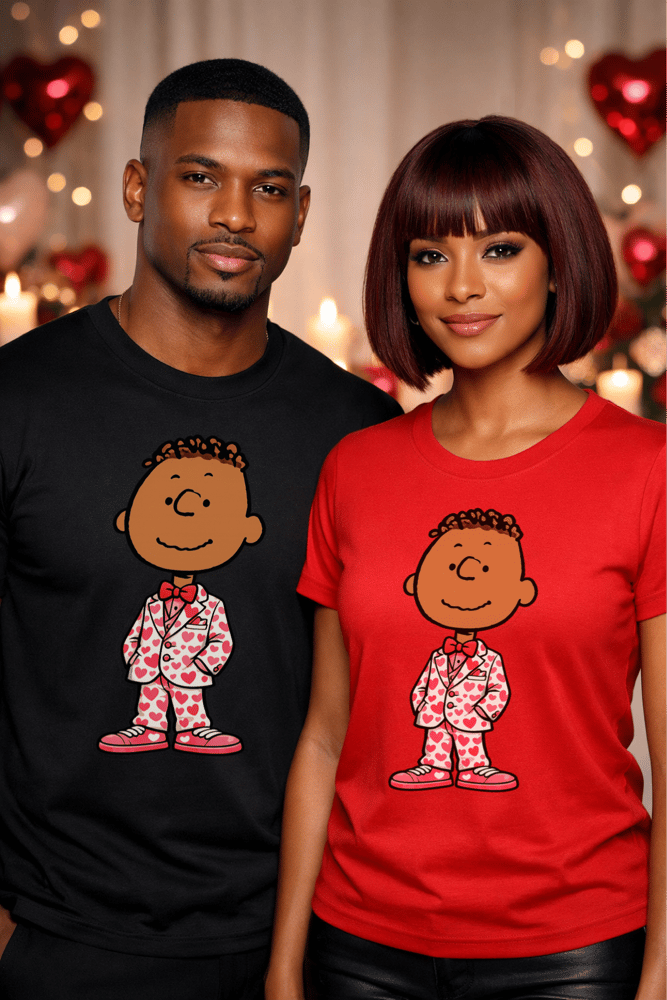 Our Franklin Valentine T-Shirt features an adorable, heart-covered suit character that brings charm, humor, and just the right amount of romance. Whether you’re celebrating with your partner, your girls, or yourself, this tee is made to turn heads and spark smiles.